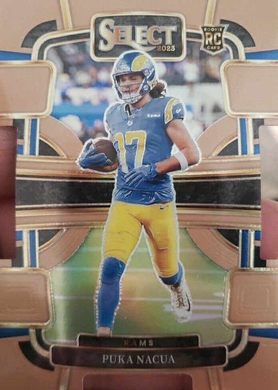 The Puka Nacua 2023 Select #56 Concourse Copper Die-Cut /299 Rookie card in Raw condition has moved up $3.54 (+22.2%) in the last 30 days and was last sold for $19.49 .