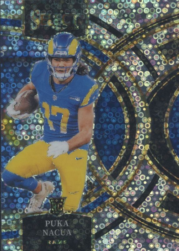 This card is 1 of 249 Puka Nacua's card variations in the 2023 Select set being tracked by Sports Card Investor, including Club Level, Concourse, Field Level, Premier Level, and Suite Level.