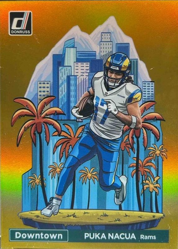 This card is 1 of 7 Puka Nacua's card variations in the 2024 Donruss set being tracked by Sports Card Investor, including Oversized Downtown, Downtown /(SSP), Unleashed /(SSP), Unleashed - Gold /10, and Downtown - Black /1.