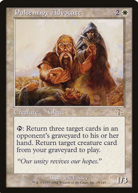 The Pulsemage Advocate 2002 Judgment #19 Base card in Raw TCG (Lightly Played) condition has moved up $0.04 (+3.2%) in the last 30 days and was last sold for $1.29 .