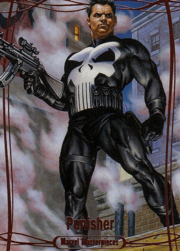 This card is 1 of 5 Punisher's card variations in the 2016 Upper Deck Marvel Masterpieces set being tracked by Sports Card Investor, including Base (/999), Epic Purple Foil /199, Speckle Holofoil /99, and Holofoil.