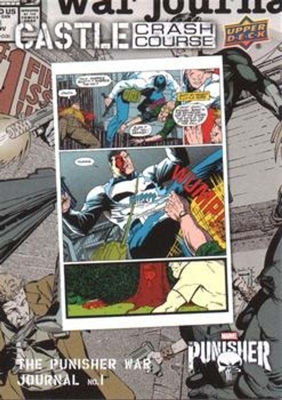 The Punisher 2020 Upper Deck Punisher Season 1 #CC-1 Castle Crash Course card is 1 of 19 Punisher's card variations in the 2020 Upper Deck Punisher Season 1 set being tracked by Sports Card Investor, including #69 Base, #69 Agent Orange, #69 One Batch, Two Batch, Penny & Dime, #CC-11 Castle Crash Course, and #CC-13 Castle Crash Course.