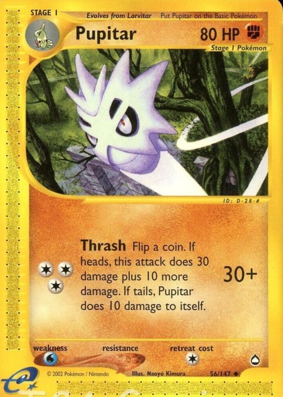The Pupitar 2003 Aquapolis #056/147 Base card in Raw TCG (Near Mint) condition has moved up $4.49 (+81.6%) in the last 30 days and was last sold for $9.99 .