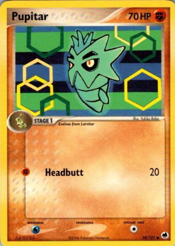 The Pupitar 2006 EX: Dragon Frontiers #058/101 Base card in Raw TCG (Near Mint) condition has not changed in price in the last 30 days and was last sold for $1.34 .