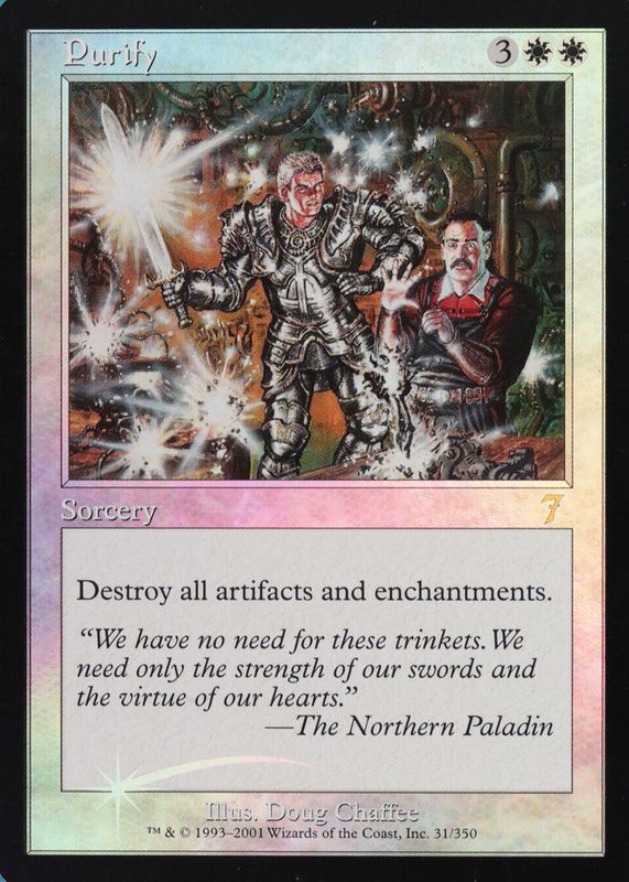 The Purify 2001 Seventh Edition #31 Foil card in Raw TCG (Near Mint) condition has not changed in price in the last 30 days and was last sold for $43.67 .
