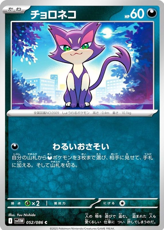 Pokemon Card Purrloin C 052/086 sv11w White Flare Japanese