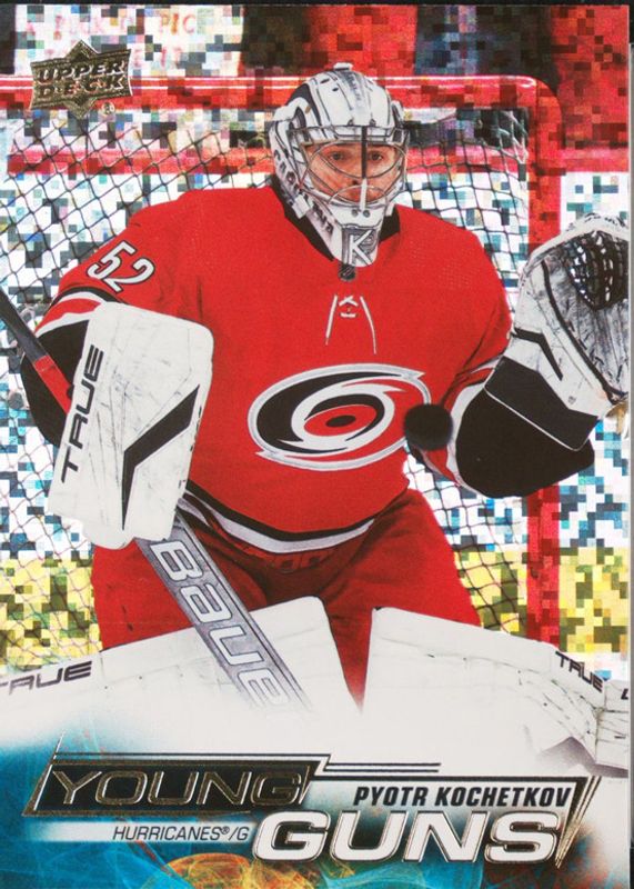 The Pyotr Kochetkov 2022 Upper Deck #224 Young Guns - Speckled Rainbow Foil Rookie card in Raw condition has not changed in price in the last 30 days and was last sold for $70.06 .