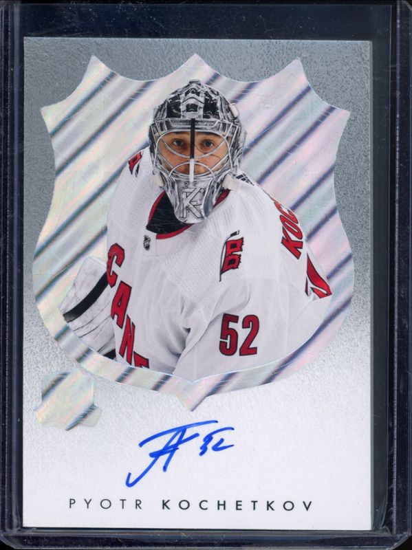 The Pyotr Kochetkov 2023 Upper Deck The Cup #LM-PK 2022 The Cup Update LogoMarks Rookies card is 1 of 57 Pyotr Kochetkov's card variations in the 2023 Upper Deck The Cup set being tracked by Sports Card Investor, including 2022 The Cup Update Signatures Patches /99, 2022 The Cup Update Rookie Class of 2023 Gold Foil - Auto /50, 2022 Splendor Update /36, 2022 The Cup Update Scripted Swatches /35, and 2022 Exquisite Collection Update Horizontal Rookie - Auto Patch /25.