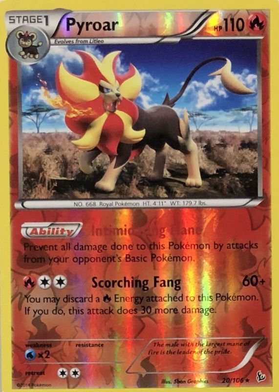 Pyroar 20/106 Reverse Holo Rare XY FlashFire Pokemon TCG Near Mint
