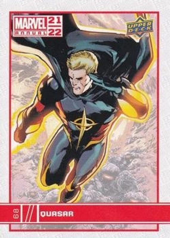 The Quasar 2021 Upper Deck Marvel Annual #68 Base card is 1 of 15 Quasar's card variations in the 2021 Upper Deck Marvel Annual set being tracked by Sports Card Investor, including Blue, Canvas Variant, Green, Magenta, and Red.