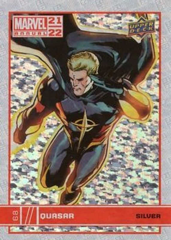 The Quasar 2021 Upper Deck Marvel Annual #68 Silver Sparkle card is 1 of 15 Quasar's card variations in the 2021 Upper Deck Marvel Annual set being tracked by Sports Card Investor, including Base, Blue, Canvas Variant, Green, and Magenta.