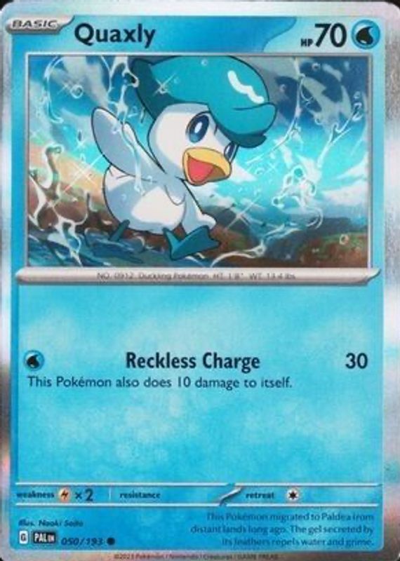 This card is 1 of 6 Quaxly's card variations in the 2023 Scarlet & Violet: Paldea Evolved set being tracked by Sports Card Investor, including #049/193 Base, #206/193 Illustration Rare, #050/193 Mirage Holo - Collector Chest Exclusive, #049/193 Reverse Holo, and #050/193 Reverse Holo.