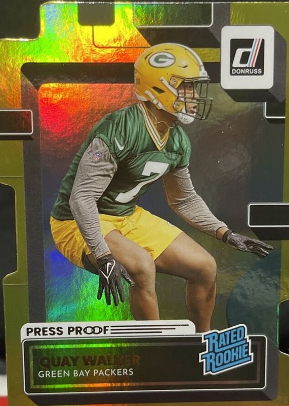 The Quay Walker 2022 Donruss #356 Press Proof Gold Die-Cut /25 Rookie card in Raw condition has not changed in price in the last 30 days and was last sold for $8.02 .