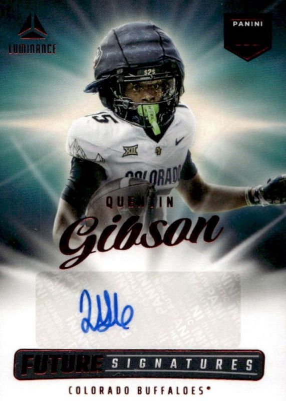 This card is 1 of 4 Quentin Gibson's card variations in the 2025 Luminance set being tracked by Sports Card Investor, including Future Signatures NIL, Future Signatures NIL - Green, and Future Signatures NIL - Purple.