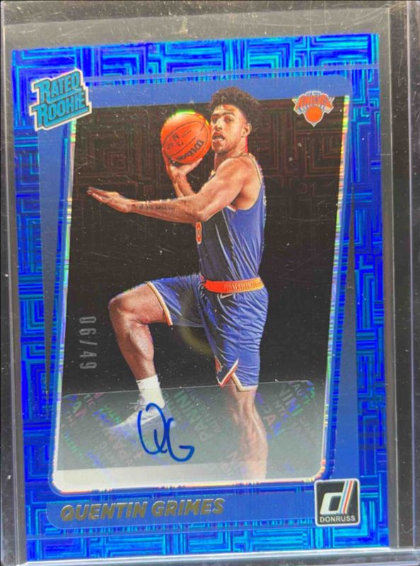 The Quentin Grimes 2021 Donruss #216 Rated Rookie Signatures - Choice Blue /49 card is 1 of 61 Quentin Grimes' card variations in the 2021 Donruss set being tracked by Sports Card Investor, including Base, Choice, Green Ice, Green Laser, and Green & Yellow Laser.