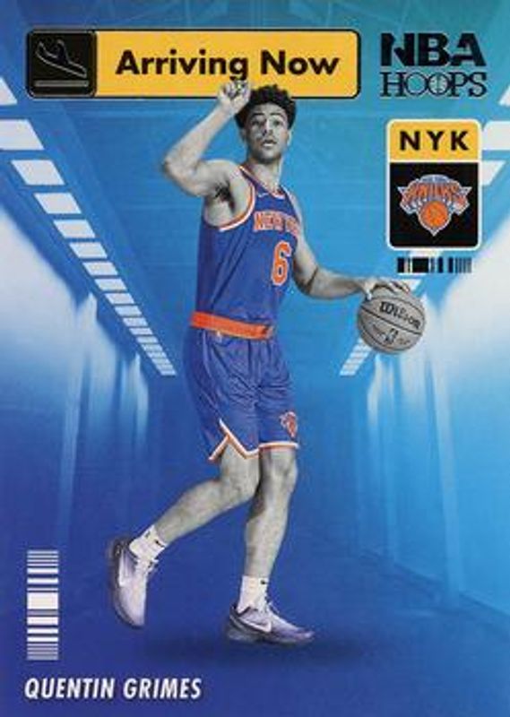 The Quentin Grimes 2021 Hoops #13 Arriving Now Rookie card is 1 of 42 Quentin Grimes' card variations in the 2021 Hoops set being tracked by Sports Card Investor, including Base, Anniversary Edition, Blue, Green Ice, and Hyper Blue.