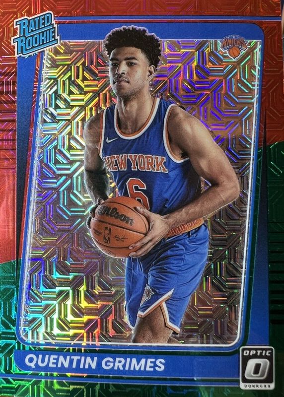 2021-22 OPTIC CHOICE QUENTIN GRIMES GREEN/RED #166 MOJO RC RATED ROOKIE KNICKS