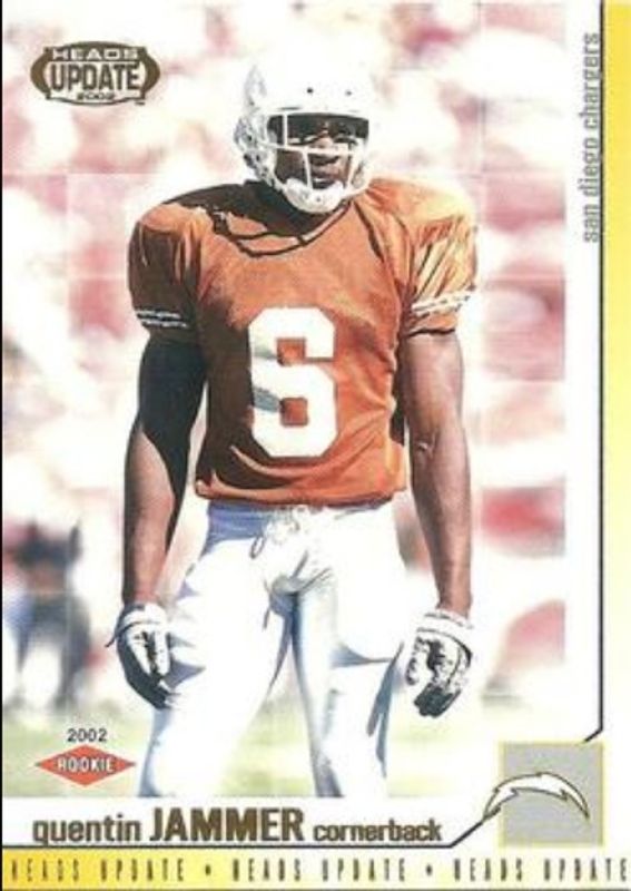 The Quentin Jammer 2002 Pacific Heads Update #148 Base Rookie card is 1 of 3 Quentin Jammer's card variations in the 2002 Pacific Heads Update set being tracked by Sports Card Investor, including Blue, and Red.