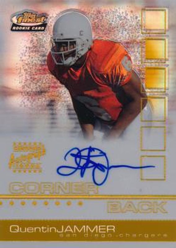 The Quentin Jammer 2002 Topps Finest #127 Gold Refractor /25 Rookie card is 1 of 4 Quentin Jammer's card variations in the 2002 Topps Finest set being tracked by Sports Card Investor, including Base, Refractor /250, and X-Fractor /20.