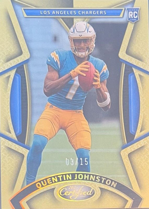2023 Panini Certified Quentin Johnston FOTL Gold Mirror RC 1/15 Jersey Match 🔥
