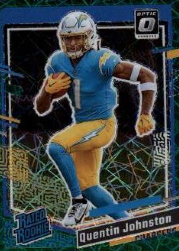The Quentin Johnston 2023 Donruss #353 Optic Preview - Green Velocity Rookie card in Raw condition has not changed in price in the last 30 days and was last sold for $14.95 .