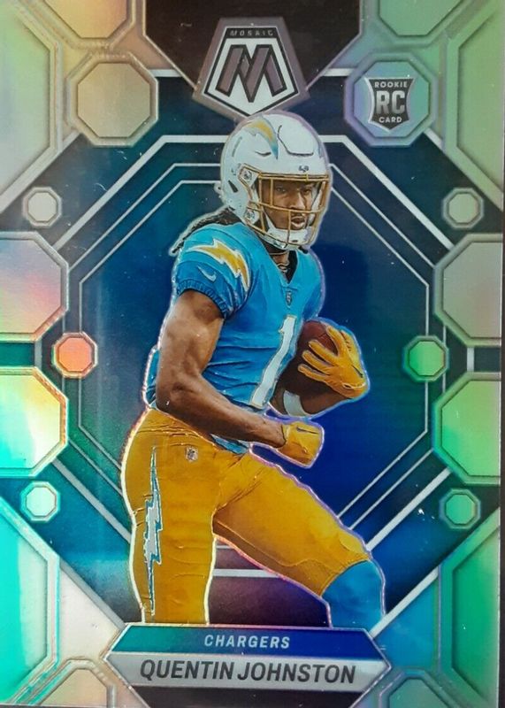 The Quentin Johnston 2023 Mosaic #356 Silver Rookie card in Raw condition has moved up $1.41 (+142%) in the last 30 days and was last sold for $2.40 .