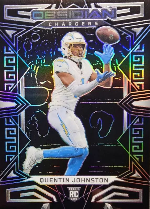 This card is 1 of 56 Quentin Johnston's card variations in the 2023 Obsidian set being tracked by Sports Card Investor, including Asia, Electric Etch Red Flood /90, Electric Etch Purple /75, Electric Etch Contra /(SSP), and Electric Etch Orange /49.