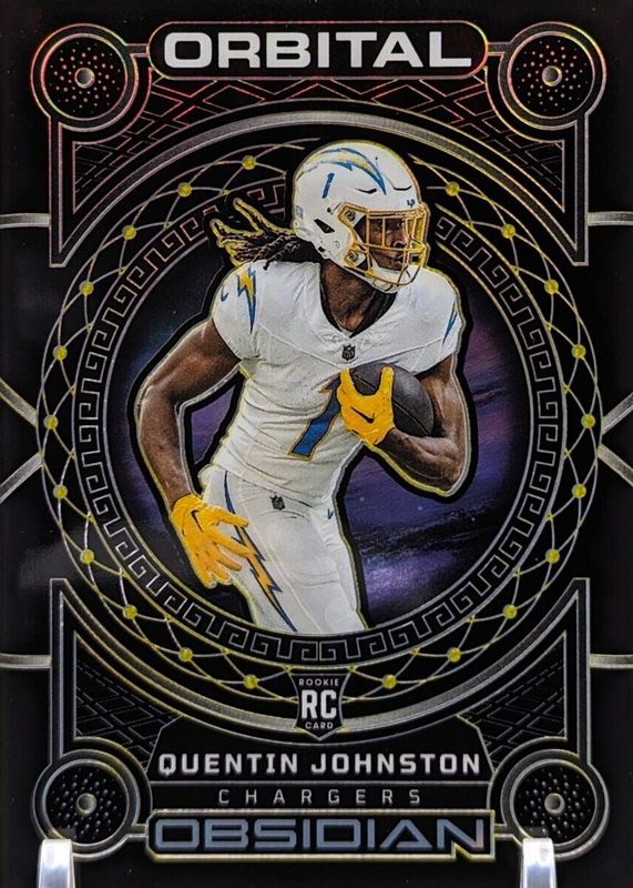 The Quentin Johnston 2023 Obsidian #14 Orbital - Electric Etch Yellow /25 Rookie card in Raw condition has not changed in price in the last 30 days and was last sold for $30.00 .