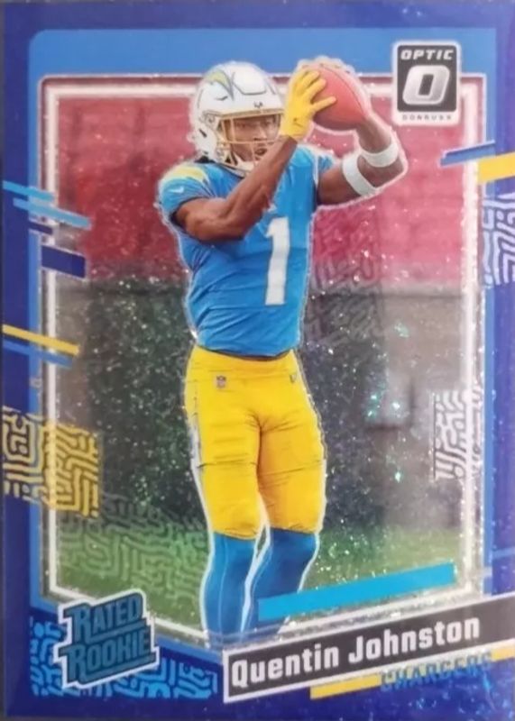 QUENTIN JOHNSTON 2023 Optic Rated Rookie Blue Glitter Prizm SSP Chargers #265 RC