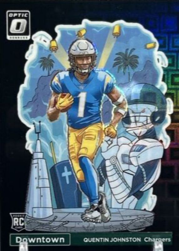 The Quentin Johnston 2023 Optic #D-16 Downtown - Black Pandora /25 Rookie card in Raw condition has not changed in price in the last 30 days and was last sold for $791.11 .