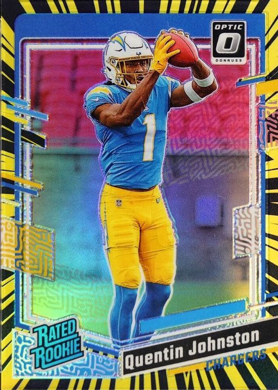 This card is 1 of 81 Quentin Johnston's card variations in the 2023 Optic set being tracked by Sports Card Investor, including Base, Blue Hyper, Blue Scope, Green Hyper, and Green Velocity.