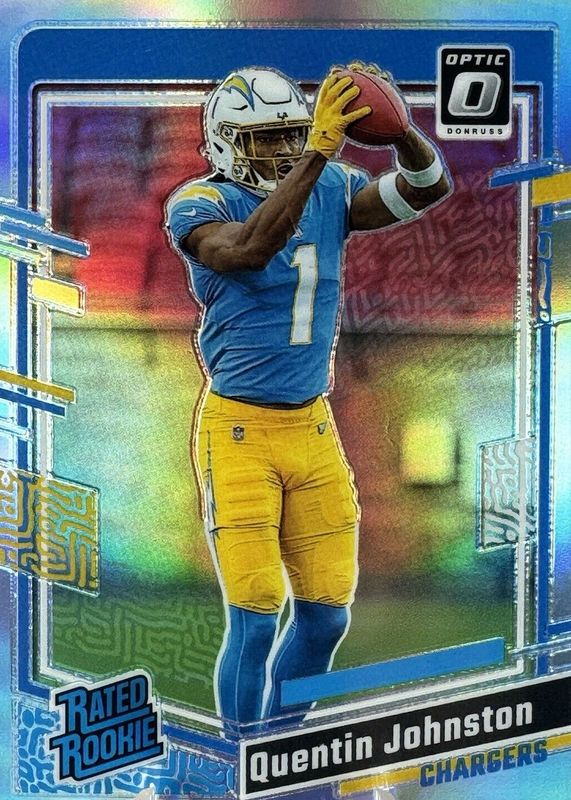 The Quentin Johnston 2023 Optic #265 Holo Rookie card in Raw condition has moved up $0.99 (+99.0%) in the last 30 days and was last sold for $1.99 .