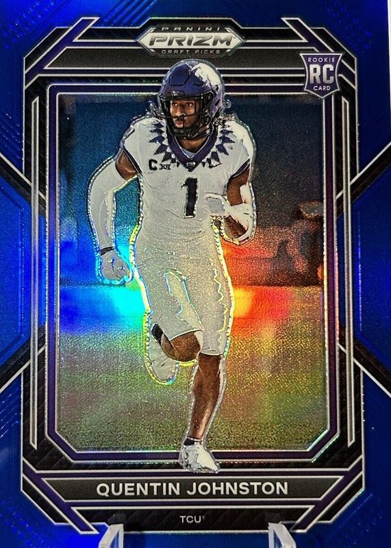 This card is 1 of 36 Quentin Johnston's card variations in the 2023 Prizm Draft Picks set being tracked by Sports Card Investor, including Base, Gold Ice, Green, Purple Wave, and Red Ice.