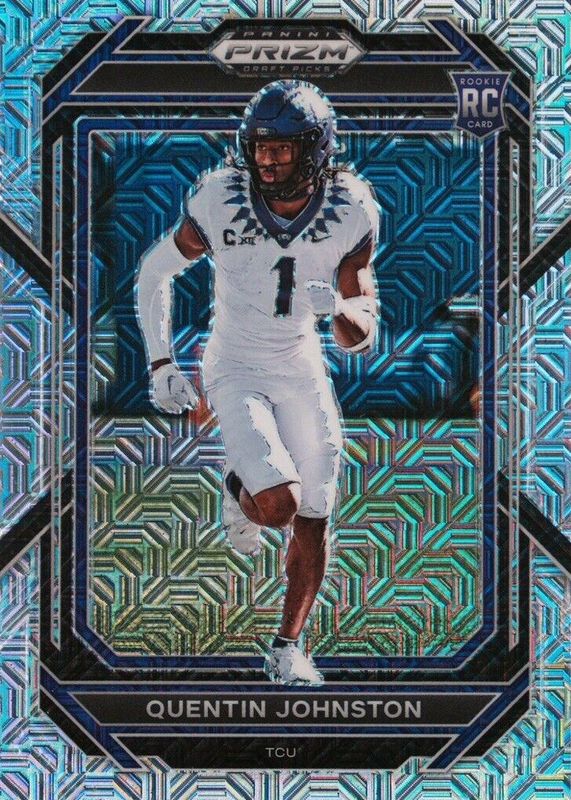 This card is 1 of 36 Quentin Johnston's card variations in the 2023 Prizm Draft Picks set being tracked by Sports Card Investor, including Base, Gold Ice, Green, Purple Wave, and Red Ice.