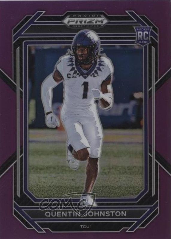 This card is 1 of 36 Quentin Johnston's card variations in the 2023 Prizm Draft Picks set being tracked by Sports Card Investor, including Base, Gold Ice, Green, Purple Wave, and Red Ice.