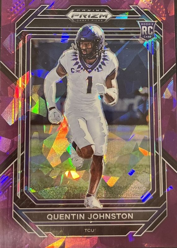 This card is 1 of 36 Quentin Johnston's card variations in the 2023 Prizm Draft Picks set being tracked by Sports Card Investor, including Base, Gold Ice, Green, Purple Wave, and Red Ice.