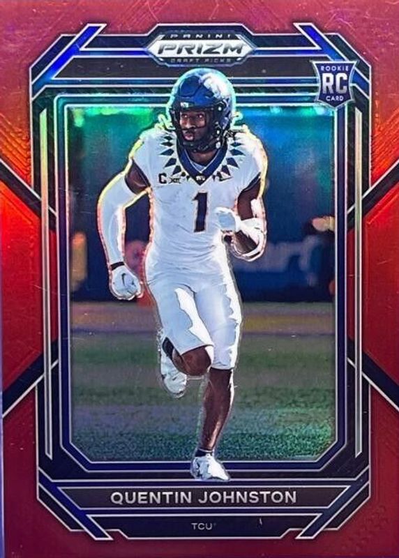 The Quentin Johnston 2023 Prizm Draft Picks #138 Red /299 Rookie card in Raw condition has not changed in price in the last 30 days and was last sold for $2.95 .