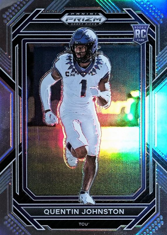 This card is 1 of 36 Quentin Johnston's card variations in the 2023 Prizm Draft Picks set being tracked by Sports Card Investor, including Base, Gold Ice, Green, Purple Wave, and Red Ice.