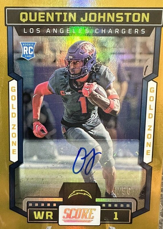 2023 Score Quentin Johnston RC #345 Gold Zone Rookie Auto #'d /50 Chargers