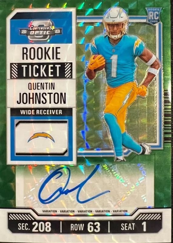 Quentin Johnston 2023 Zenith #130 Contenders Optic Rookie Ticket Auto Preview - Green /23 (Facing Right) RAW Price Guide