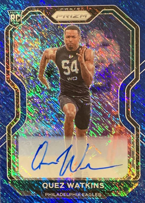 Best Prices Available For Sale of Quez Watkins 2020 Prizm #344 Rookie Autographs - Blue Shimmer /25