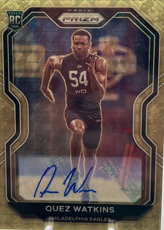 Auctions Ending Soon for Quez Watkins 2020 Prizm #344 Rookie Autographs - Gold Vinyl /5 RAW