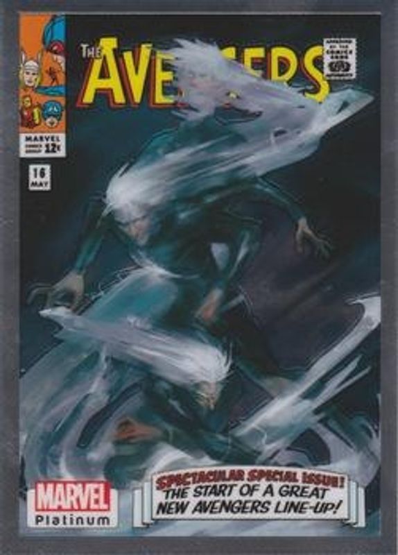 The Quicksilver 2023 Upper Deck Marvel Platinum #WI50 Cover Variant card is 1 of 44 Quicksilver's card variations in the 2023 Upper Deck Marvel Platinum set being tracked by Sports Card Investor, including Base, Black Rainbow, Blue Rainbow, Blue Surge, and Purple Rainbow.