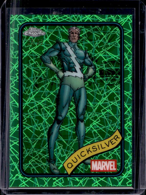 The Quicksilver 2025 Topps Chrome #121 Hulk Green Lazer Refractor /99 card is 1 of 23 Quicksilver's card variations in the 2025 Topps Chrome set being tracked by Sports Card Investor, including Base, Refractor, Yellow Lava Refractor, Spider Web Refractor /399, and Blue Refractor /299.