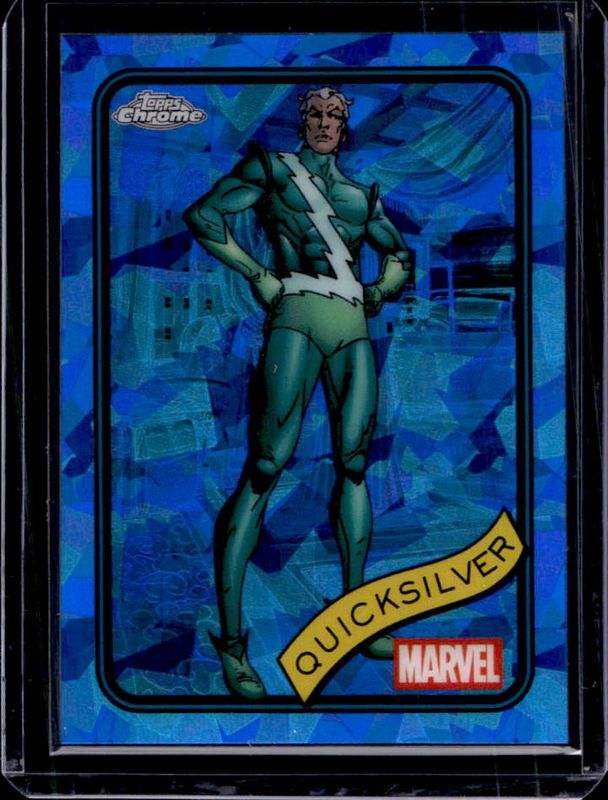 The Quicksilver 2025 Topps Chrome Sapphire Edition #121 Base card is 1 of 9 Quicksilver's card variations in the 2025 Topps Chrome Sapphire Edition set being tracked by Sports Card Investor, including Green Refractor /99, Aqua Refractor /75, Gold Refractor /50, Orange Refractor /25, and Purple Refractor /15.