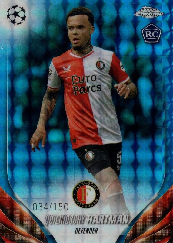 Quilindschy Hartman 2023 Topps Chrome UEFA Club Competitions #185 Blue Geometric Refractor /150 Rookie RAW Price Guide