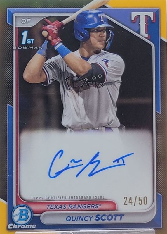 2024 Bowman Chrome Prospects QUINCY SCOTT GOLD AUTO 1ST ROOKIE RC SP /50 Rangers