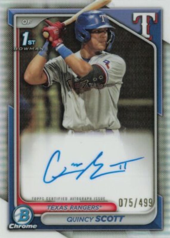 2024 Bowman Chrome Quincy Scott 1st Auto Refractor /499 Texas Rangers #CPA-QS