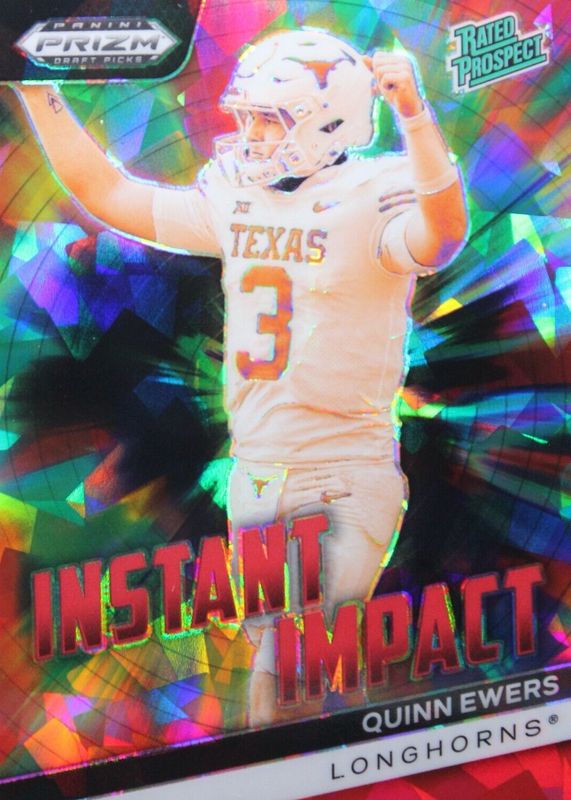 The Quinn Ewers 2024 Prizm Draft Picks #II-QE Instant Impact - Red Ice card in Raw condition has moved down -$0.14 (-12.0%) in the last 30 days and was last sold for $0.99 .