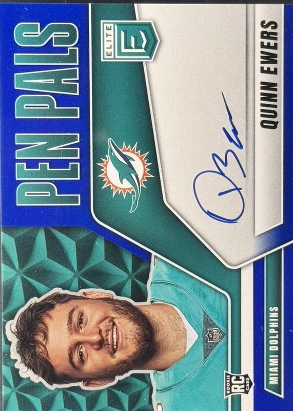2025 Donruss Elite Quinn Ewers RC PEN PALS AUTO BLUE SSP #PP-QEW Dolphins Rookie